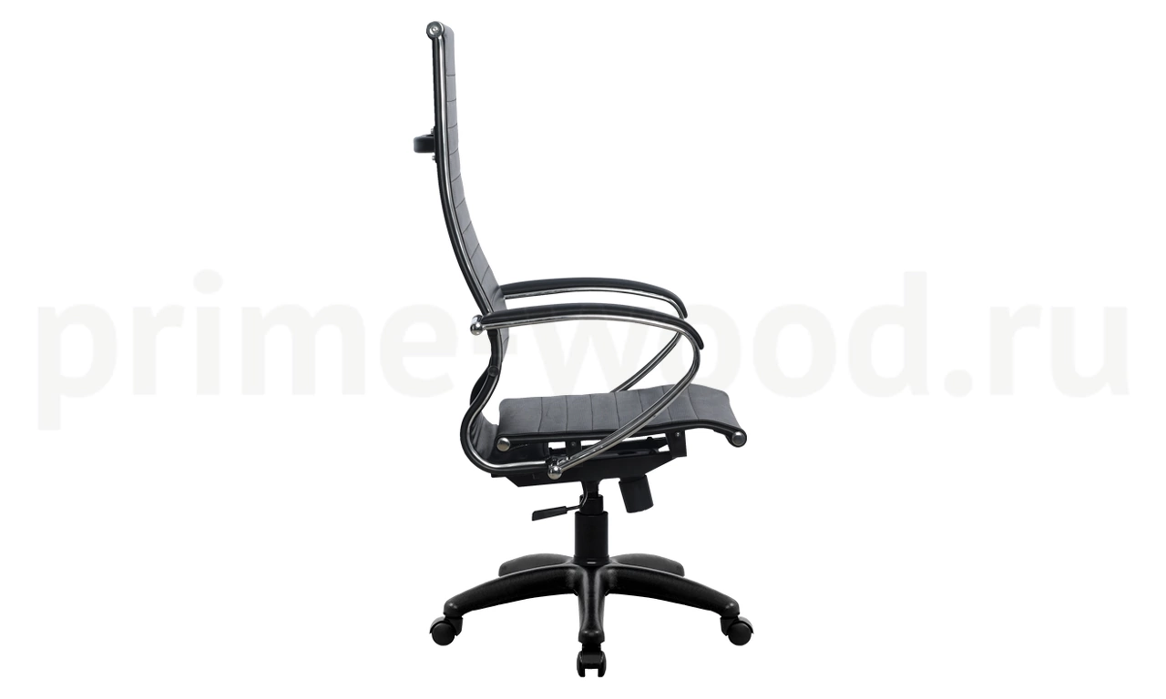 Спинка: высокая, черное полимерное покрытие каркаса с хромированным молдингом, ширина 475 мм